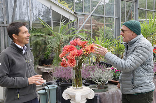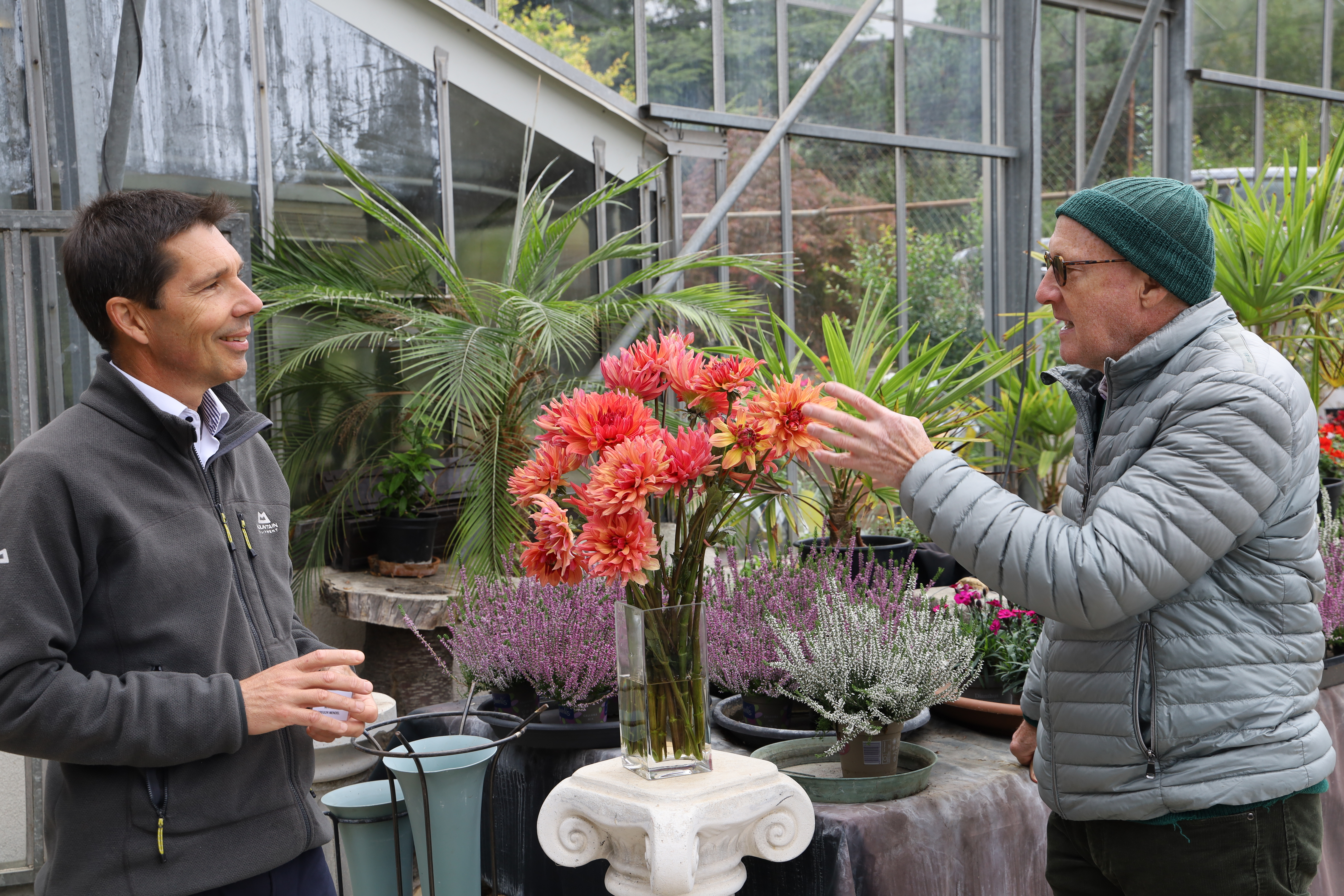 Dahlienzüchter Wirth (li) im Gespräch mit dem Mohnzüchter Dr. Georg Dobos