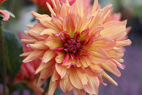 Die Neuzüchtung geht auf einen Sämling aus offener Bestäubung zurück, die Sorte ist ihrem Typus nach in die Gruppe der beliebten Semikaktus-Dahlien klassifiziert. Sie zeichnet sich durch imposante Blüten und ein herrliches Farbenspiel von bronze-gelb über orange mit rückseitigem rot aus.